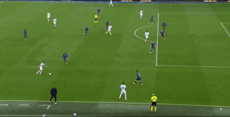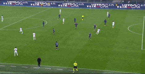 比賽第7分鐘,勞塔羅接隊友挑傳殺入禁區(qū),挑射越過門將卻被后衛(wèi)在門線上解圍;